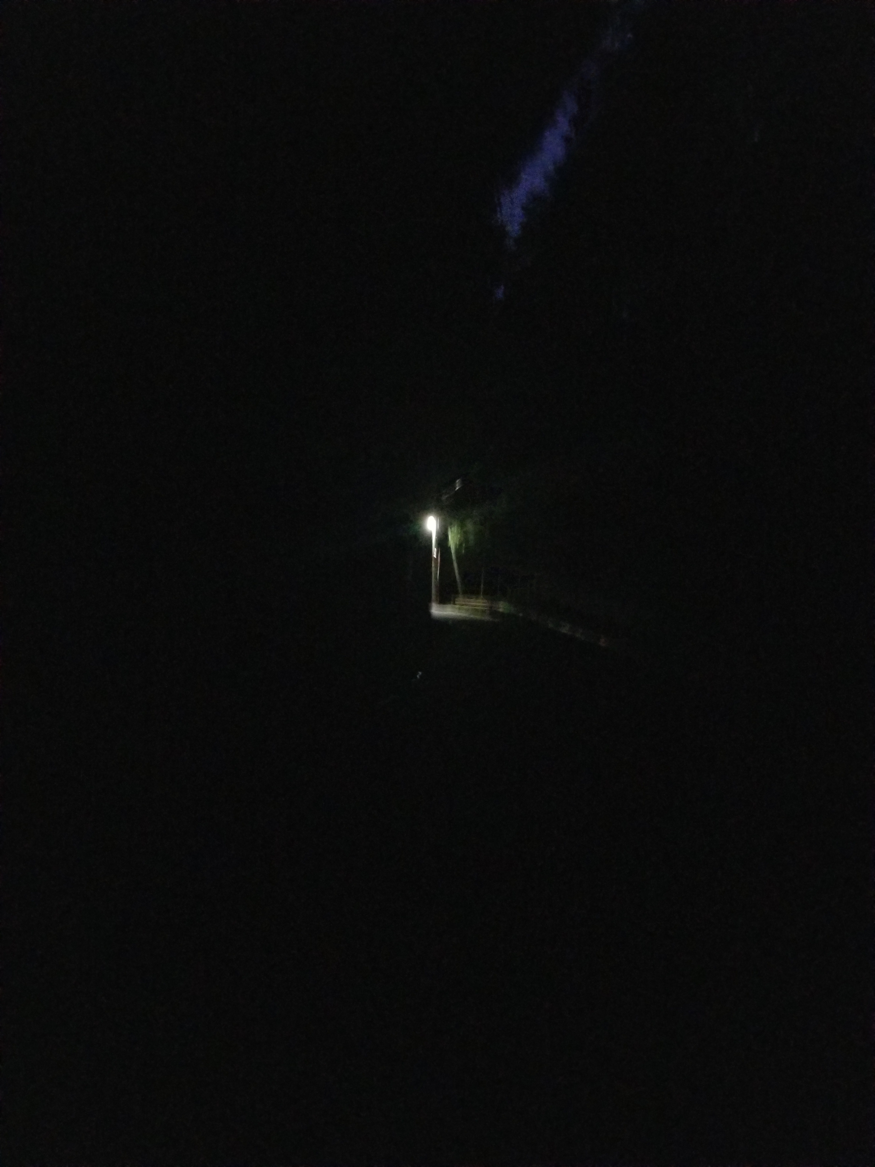 通常なら30分で入山ポイントに着く位置ですが、足元の段差や根っこが見えないし、目の前に張り出している枝も見えないので、コケるし顔や頭をぶつけるしで気持ちが萎えます。一層動きが鈍くなり、ついには真っ暗になってしまいました。