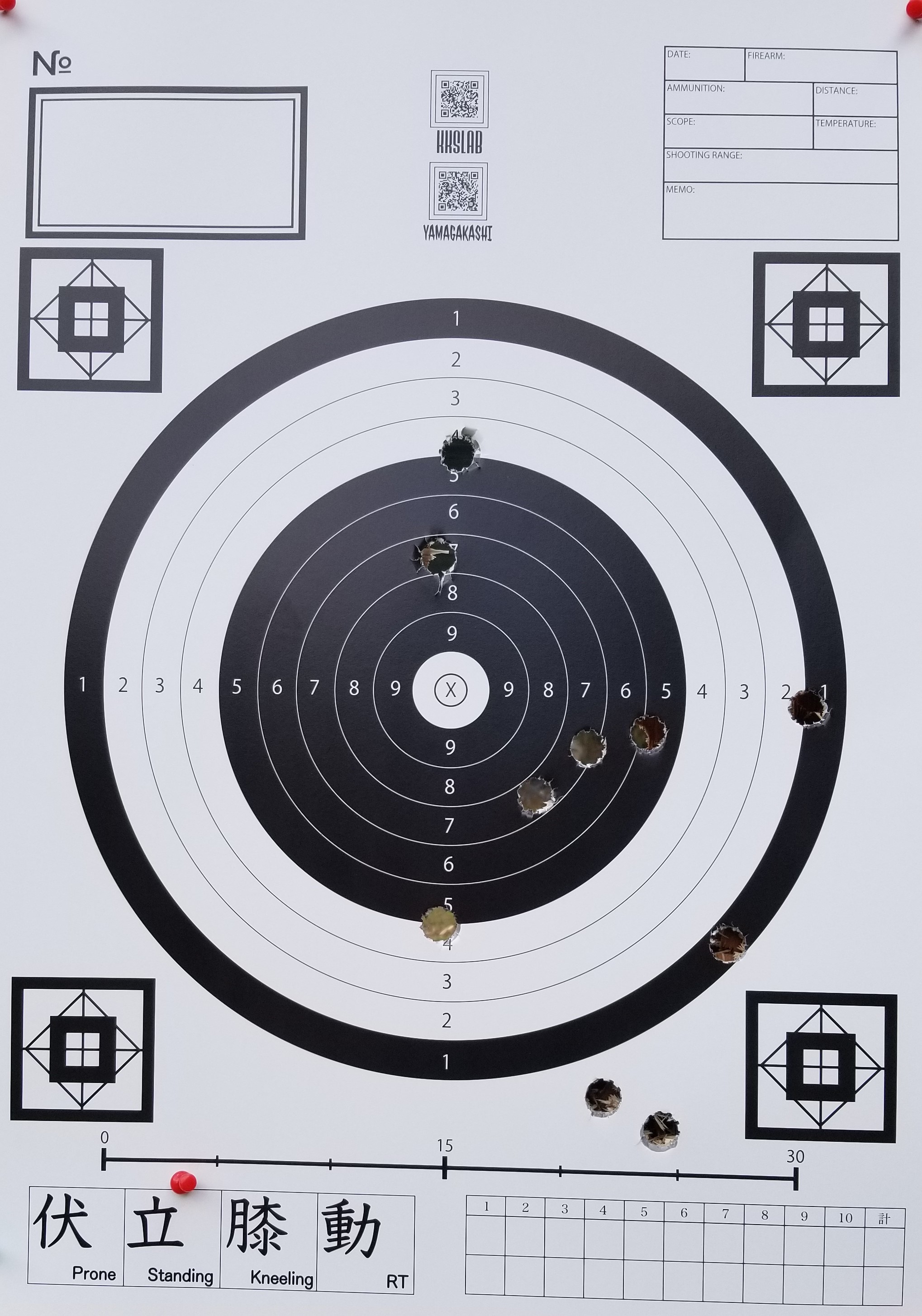 100m立射 弾痕不明もちらほら。。的紙にあてるのがやっとのレベルです。