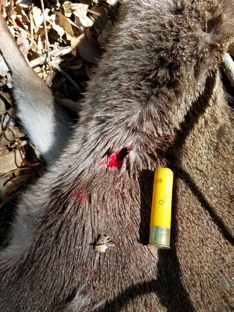 今回は成獣のバイタルに命中した場合の弾痕です。少量の血液と空洞が見えます。