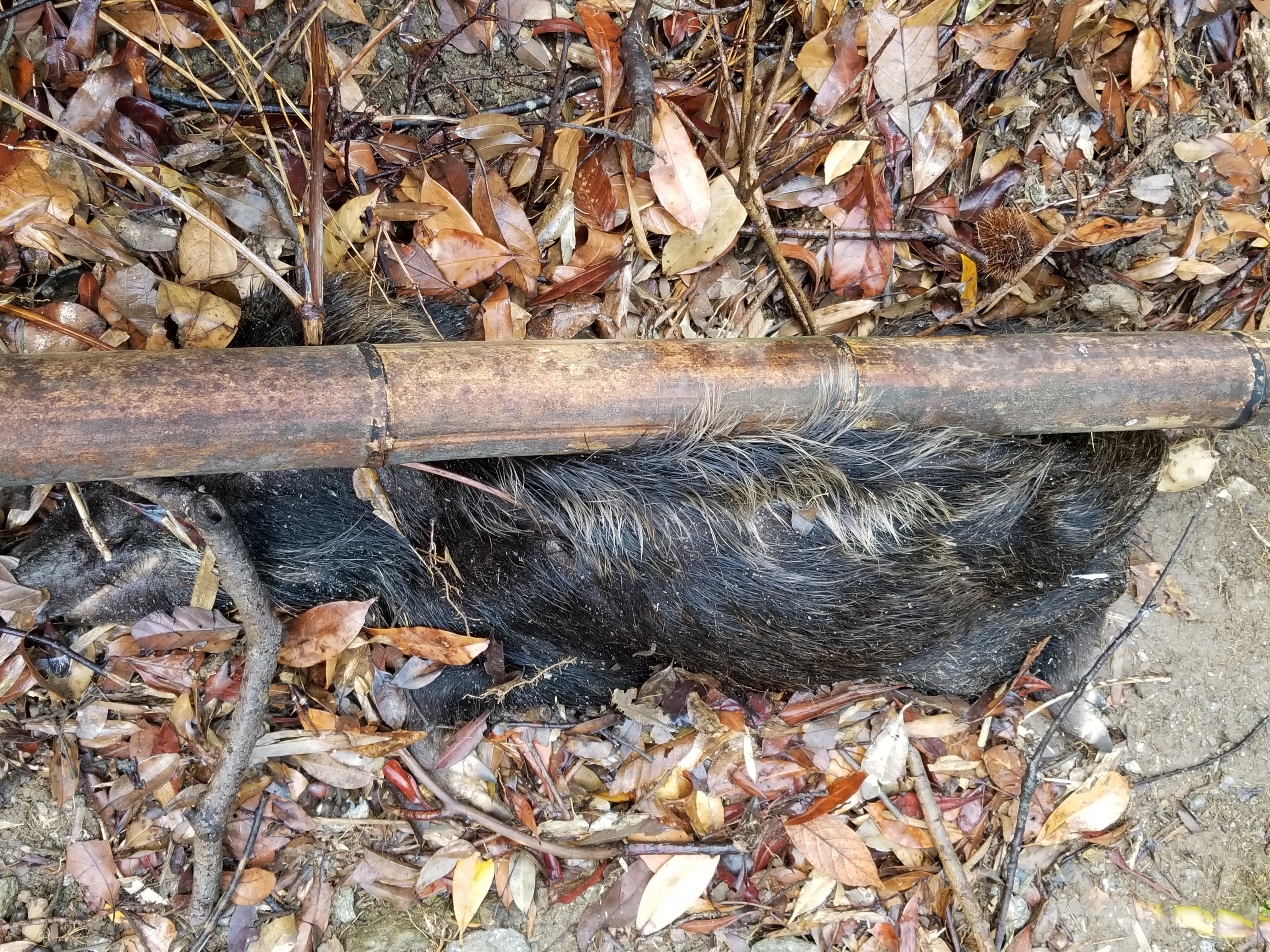 竹の下に潜り込むよな素振りが見えます。これ以上潜られたり奥へ移動されたりすると視認しづらくなります。