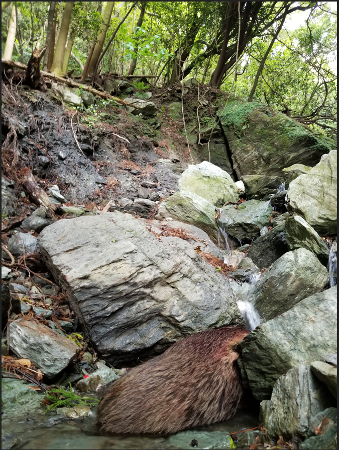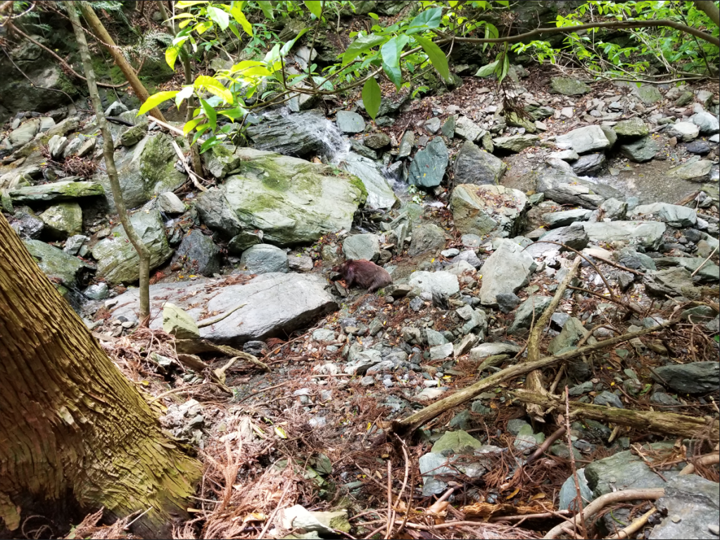 もう足音を気にしなくていいので、自分もできる限り早足で斜面を降りていく。沢の音が間近に聞こえるまで降りる。