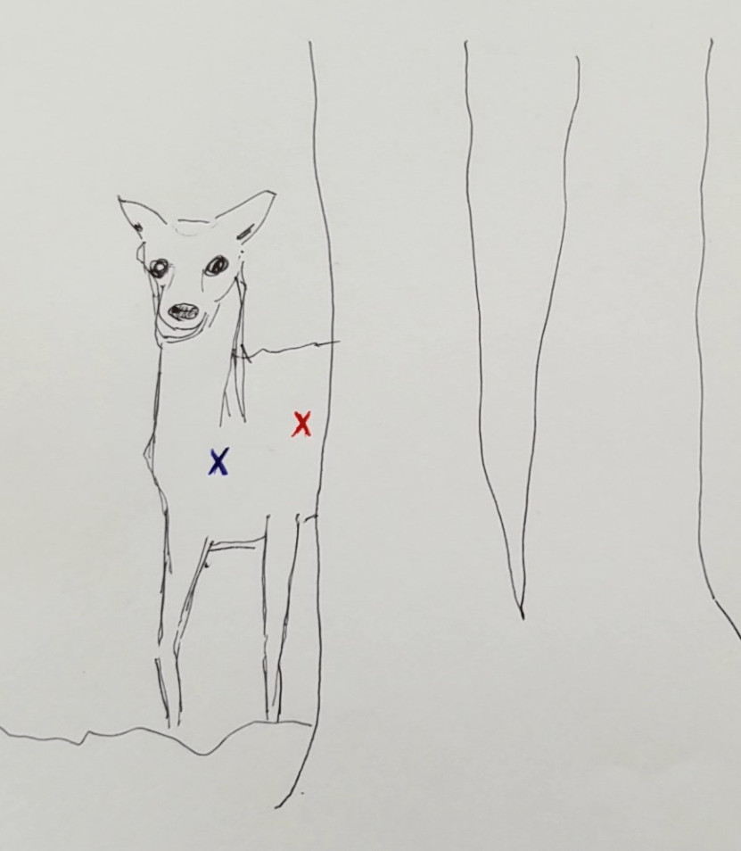 立ったまま木に委託して親鹿を撃ちたいですが木々が射線を遮ります。