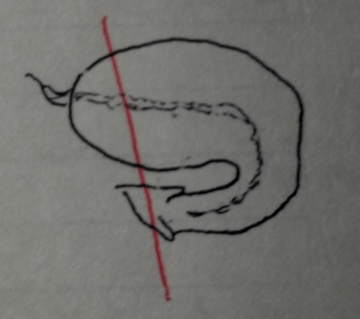 ちょうど緑の葉っぱが付いたあたり。ロースまで。