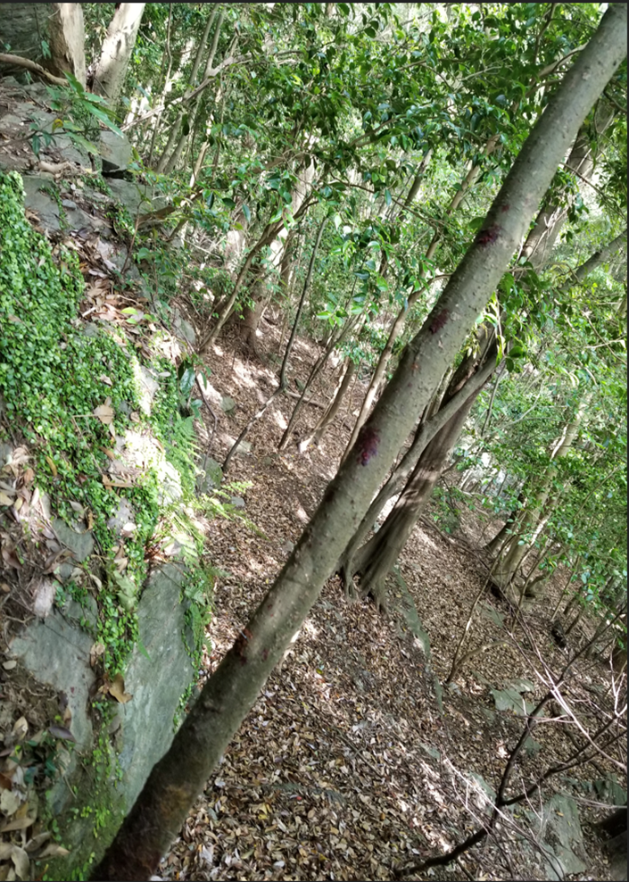 崖から落ちて木にぶつかってずり落ちたのでしょうか。想像できません。