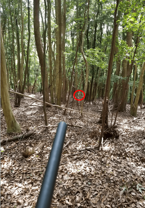 地面(平面)ではなく崖(立体)で血痕を探す経験が初めてでなかなか見付けられないので、臭覚を意識して臭いの強い方向を探します。
