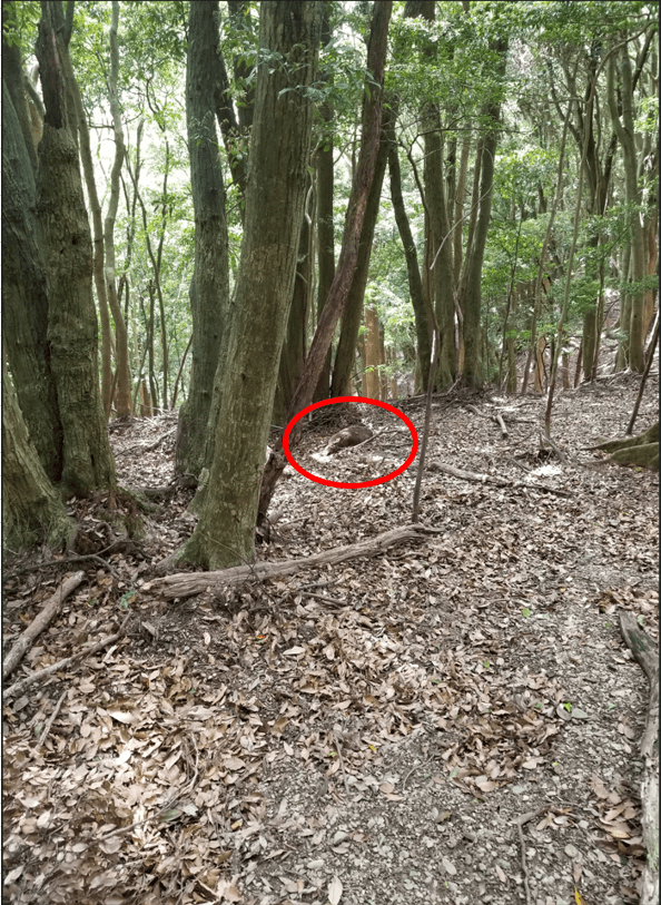 獣道を外れて斜面を駆け下りたか転げ落ちたのでしょう。