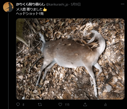 ※猟銃で有害鳥獣駆除を行った画像を加工せず掲載しています。
